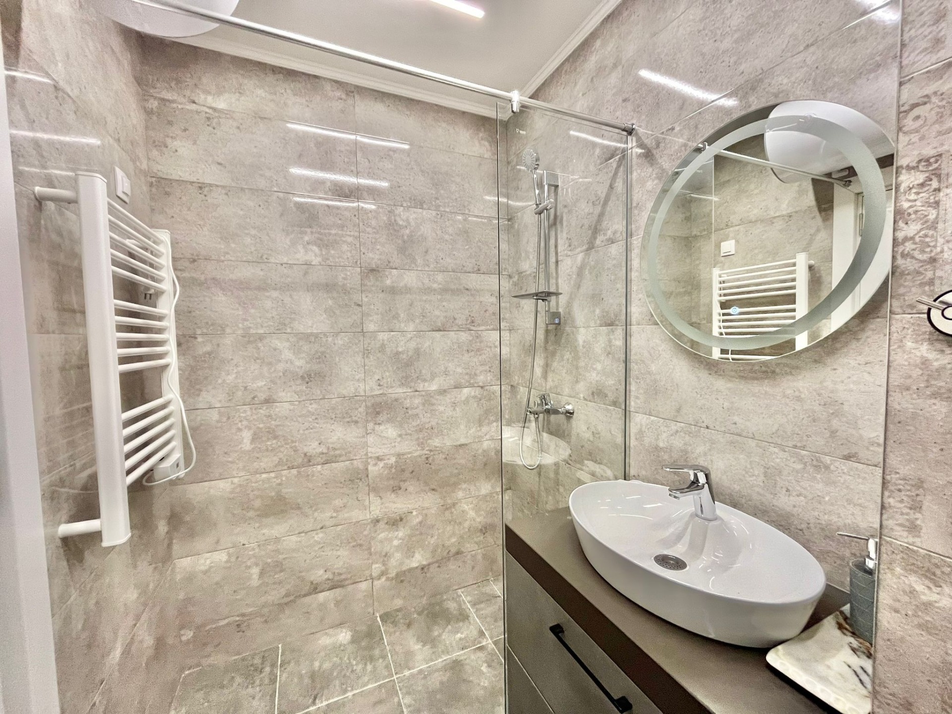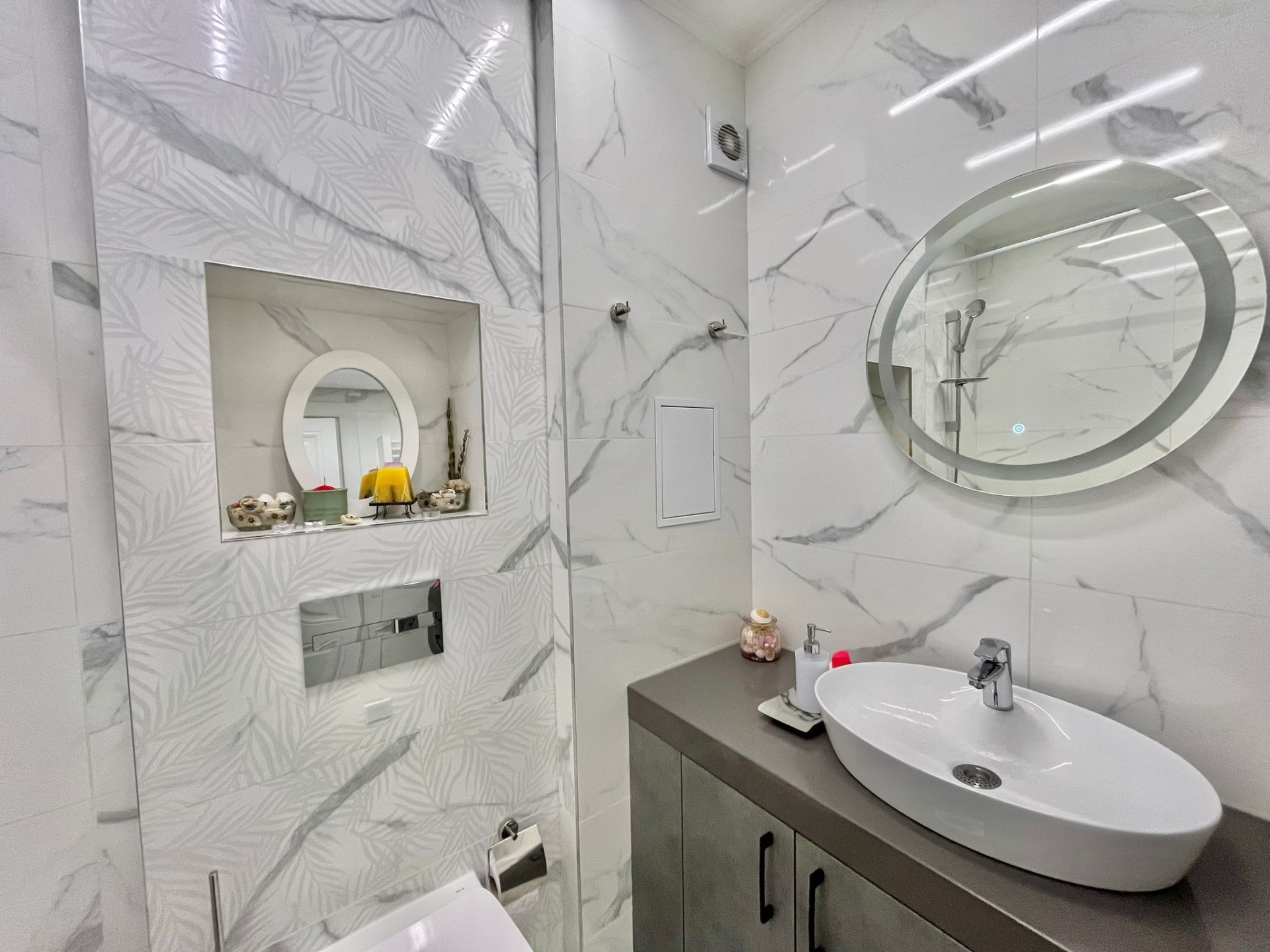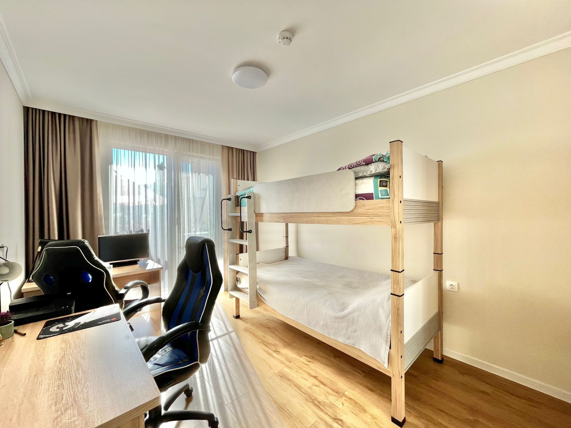 The apartment is fully equipped with new appliances, namely: built-in refrigerator, oven, hob, extractor hood, washing machine. All furniture is completely new. The quality of construction meets all building standards, the apartment is very warm in winter.