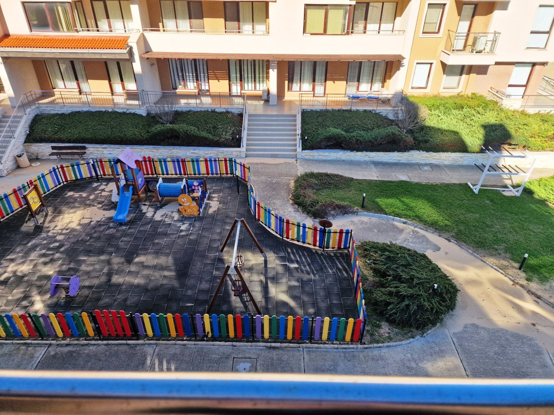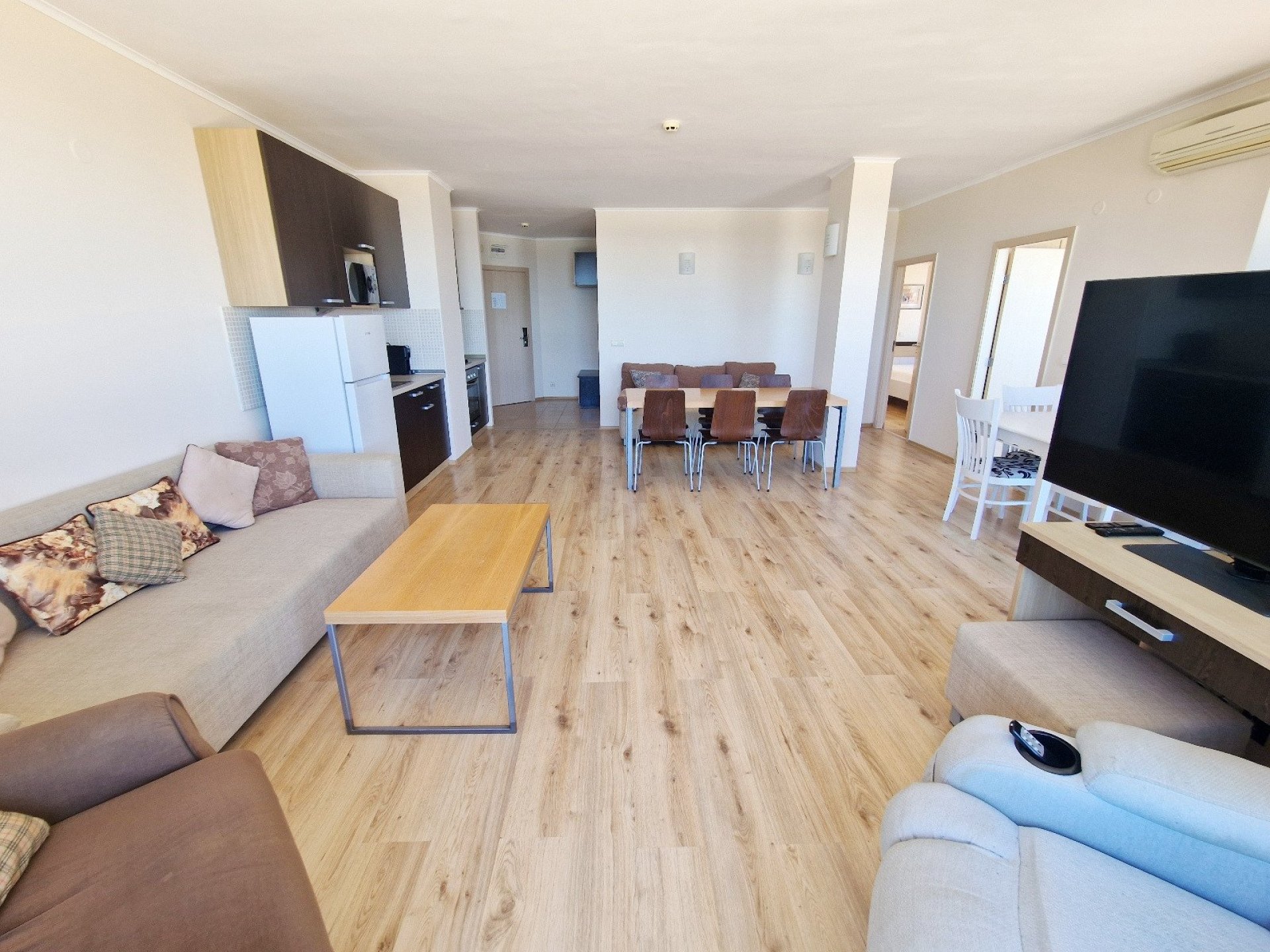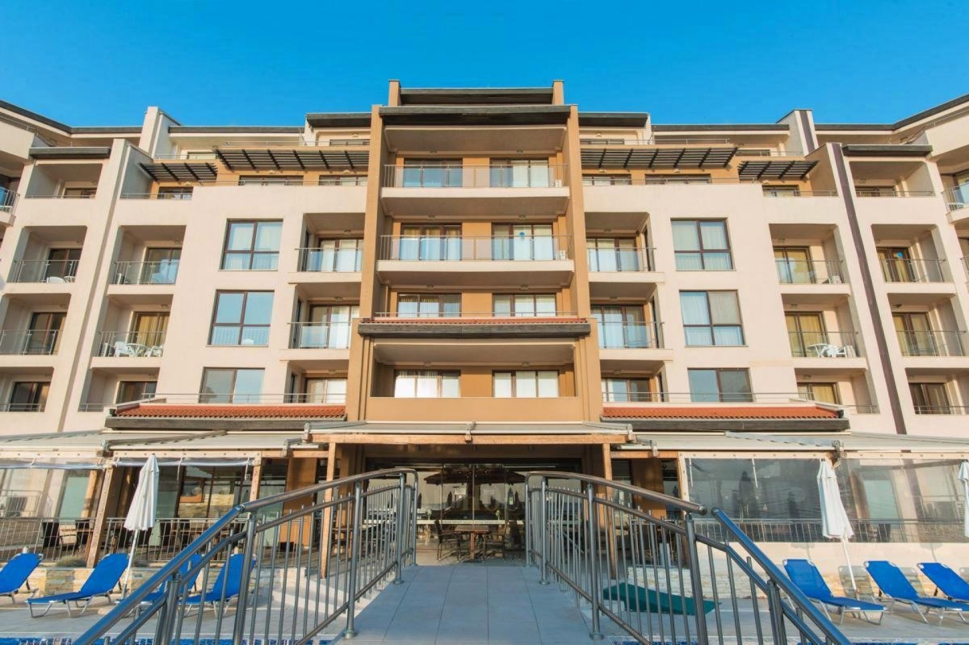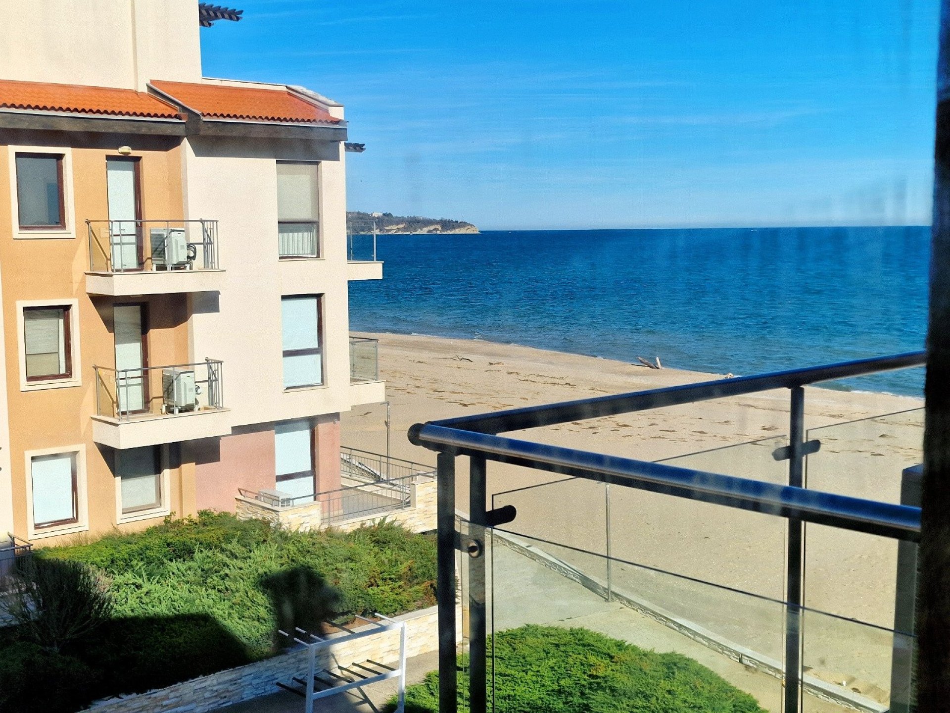The complex by the beach offers a wide range of facilities for relaxation and active days. Swimming pools with sun loungers and parasols, fitness, restaurant, children's playground, animation, reception, guarded parking and year-round security. Right in front of the house is one of the most beautiful beaches in Bulgaria - 10 kilometers long, with golden sand and calm sea.