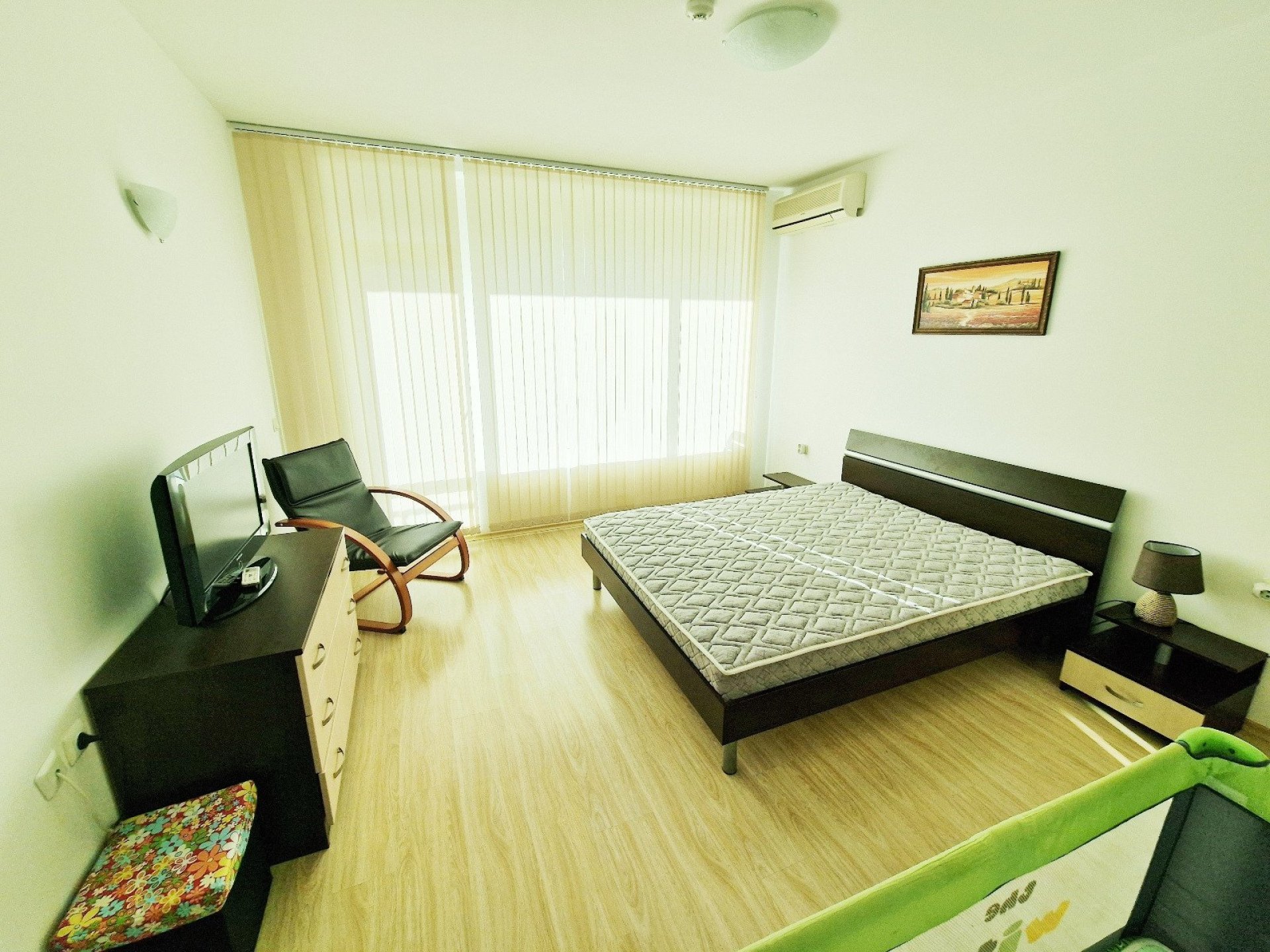 The complex in which the apartment is located provides a wide range of facilities for comfort and relaxation. Two outdoor swimming pools, fitness, games room, conference room, children's playground and quiet areas with sun loungers and parasols. There is a parking lot in front of the house and of course there is an elevator. The beach is literally in front of the house - on fine sand and with water attractions for children.