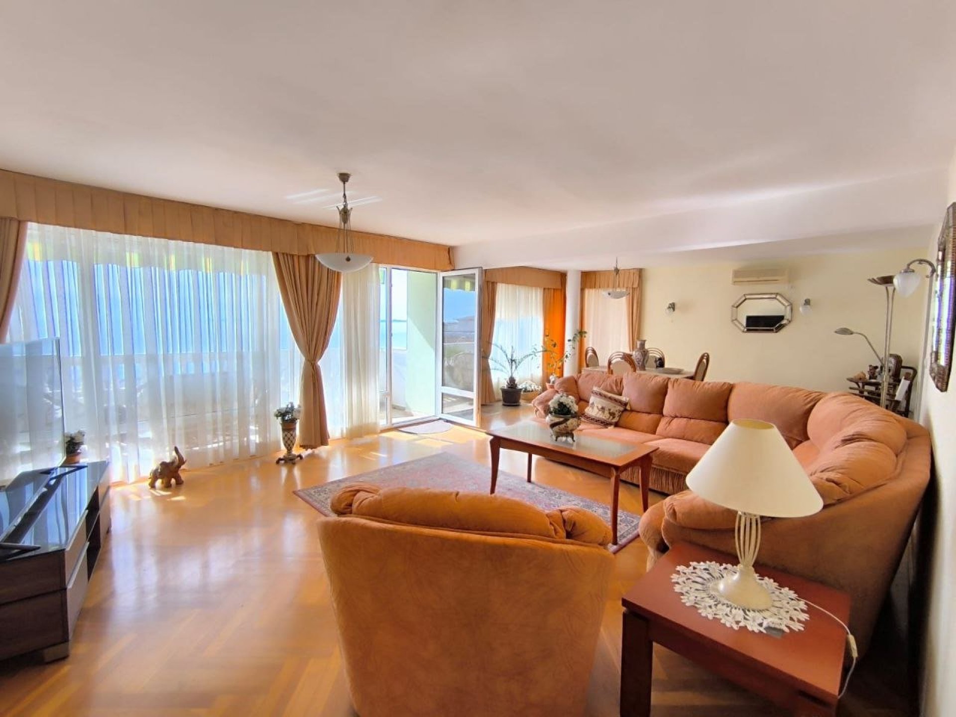 Spacious living room with access to the terrace with direct sea view