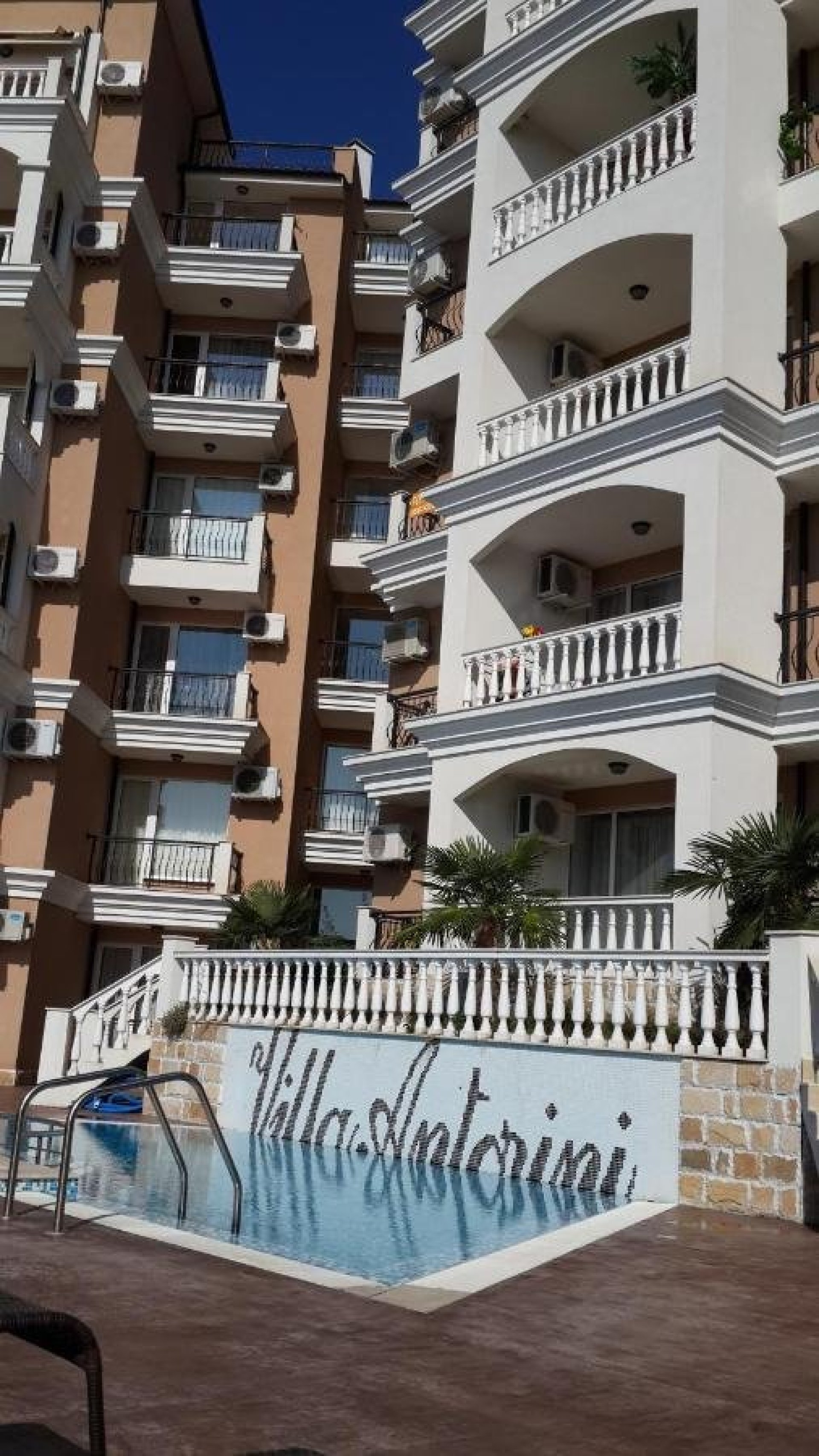 This cozy 2-room apartment with an area of 68 m² is located on the 3rd floor of the popular Villa Antorini complex. It offers an ideal space for a quiet family vacation, year-round living or a convenient rental. Access to a VIP terrace with a beautiful sea view and barbecue.
