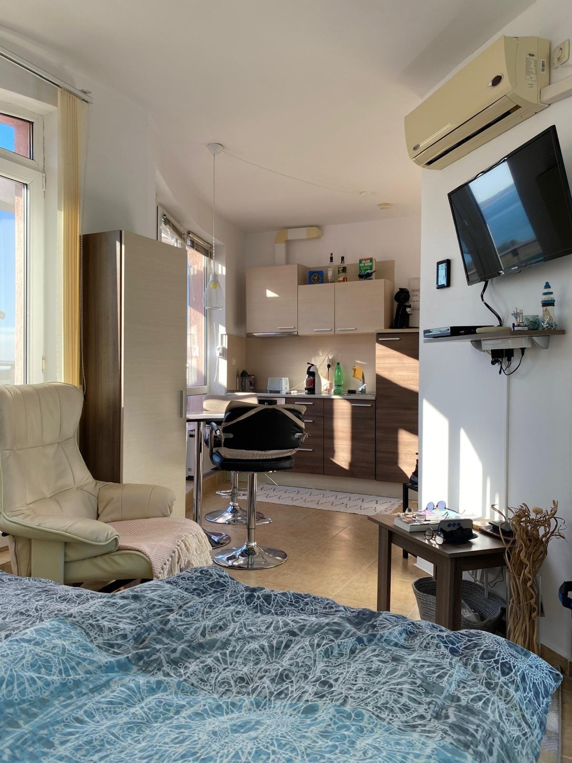 We offer for sale a spacious and fully furnished studio apartment, located in a modern gated complex "Costa Calma" - on the first line to the sea, in a quiet and popular area between Ravda and Aheloy.
