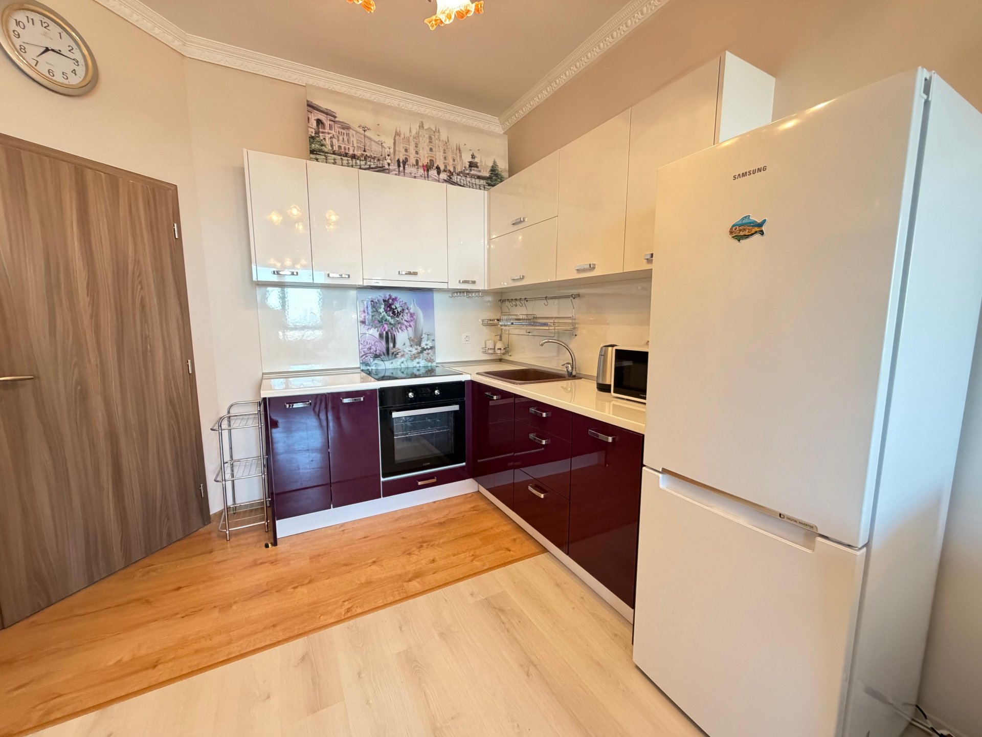 The apartment is equipped with modern furniture and appliances. It is ready to move in!
